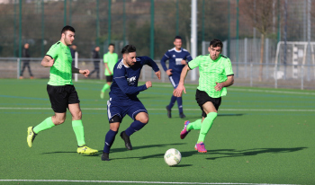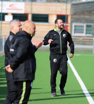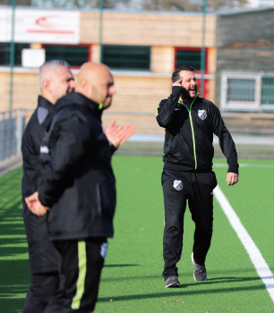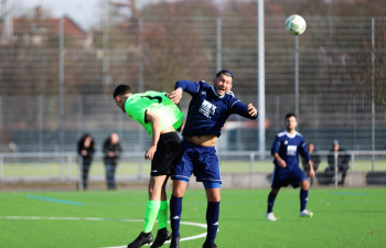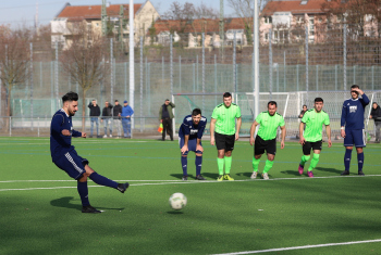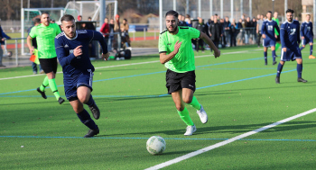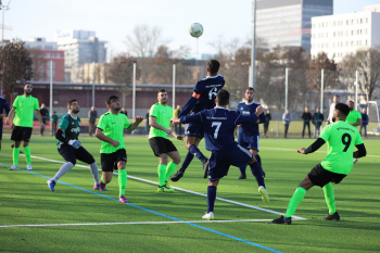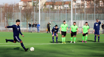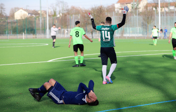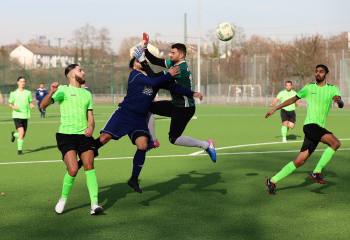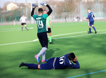Okan Koyun (Niederrad) erhält von Torwart Abdelaziz (Tarik) einen Schlag ins Gesicht und geht zu Boden