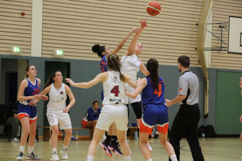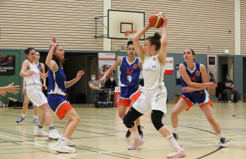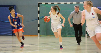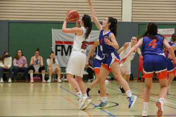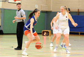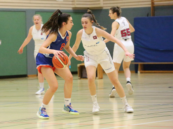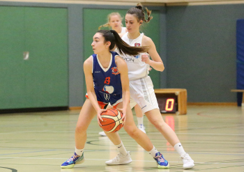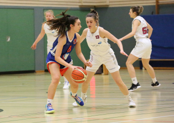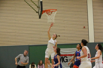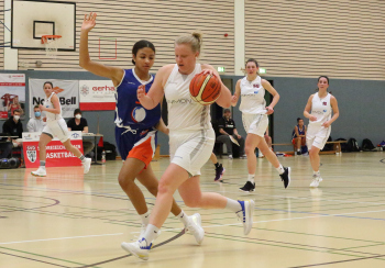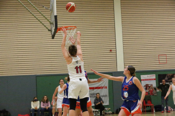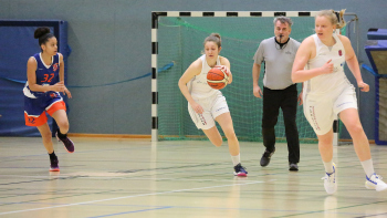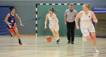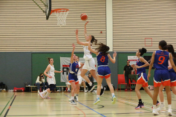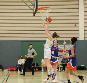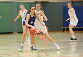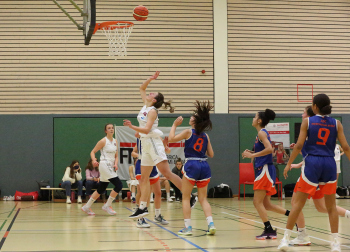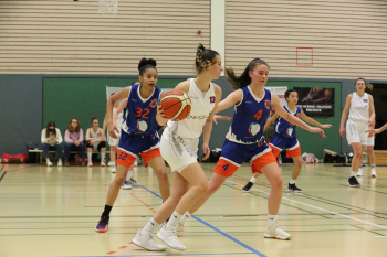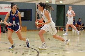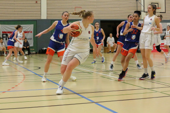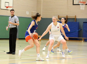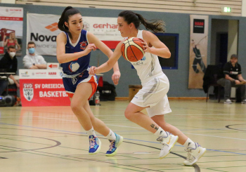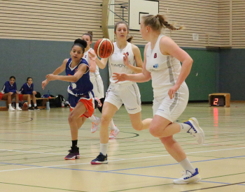 Palacios Alynna (32, ASC Mainz) Isabelle Stephanblome (11, SVD), Carolin Christen, (8, SVD) mit dem Ball