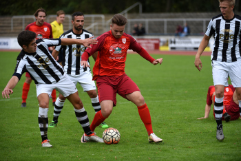 02.10..2016 Neu-Isenburg, Sportpark Saison 2016/2017 Verbandsliga S?d Spvgg. 03 Neu-Isenburg - FC Kalbach Mourad Tariq (03) gegen Soufian Chihab (FC Kalbach) ********** Foto: Peter Hartenfelser