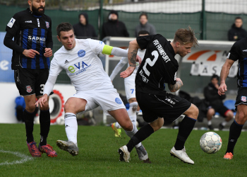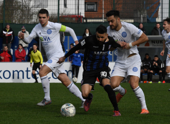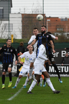 29.02.2020 Alzenau Regionalliga Südwest Saison 2019/2020 Bayern Alzenau - FSV Frankfurt v.l. Kreso Ljubicic (Alzenau), Denis Mangafic (FSV), Dren Hodja (Alzenau) *** Foto: Peter Hartenfelser