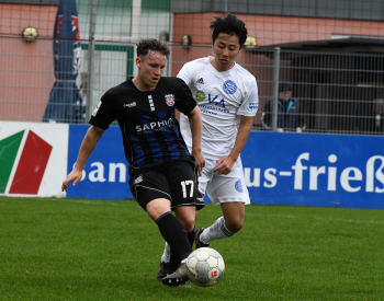 29.02.2020 Alzenau Regionalliga Südwest Saison 2019/2020 Bayern Alzenau - FSV Frankfurt v.l. Steffen Straub (FSV), Masaki Murata (Alzenau) *** Foto: Peter Hartenfelser