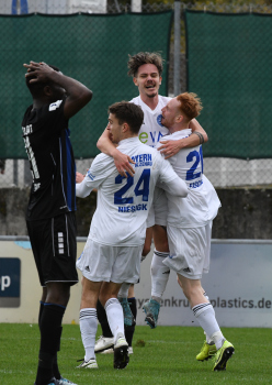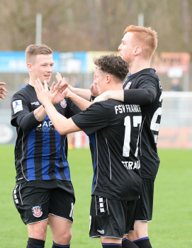 29.02.2020 Alzenau Regionalliga Südwest Saison 2019/2020 Bayern Alzenau - FSV Frankfurt v.l. Torjubel Alzenau (in der Mitte Torschütze Daniel Haritonov (Alzenau) *** Foto: Peter Hartenfelser