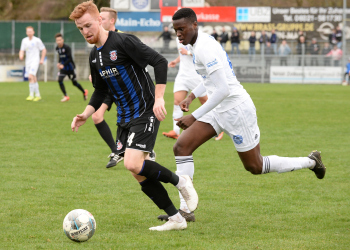 29.02.2020 Alzenau Regionalliga Südwest Saison 2019/2020 Bayern Alzenau - FSV Frankfurt v.l. Elias Niesigk (Alzenau), Dominik Nothnagel (FSV), *** Foto: Peter Hartenfelser