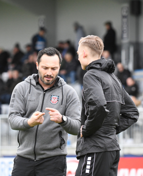 29.02.2020 Alzenau Regionalliga Südwest Saison 2019/2020 Bayern Alzenau - FSV Frankfurt v.l. Trainer Thomas Brendel (FSV) im Gespräch mit Micha Häuser (Alzenau) *** Foto: Peter Hartenfelser
