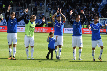 Schlussjubel nach dem Sieg u.a. Sobiech, Artur (20) SV Darmstadt 98, Stark, Yannick (25) SV Darmstadt 98