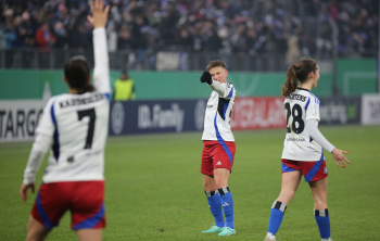 12.02.2025, xcex, GER, Hamburg, Volksparkstadion, Frauenfussball, DFB-Pokal der Frauen, Viertelfinale, 2. Frauen-Bundesliga, Saison 2024/2025, HSV Frauen - Borussia Moenchengladbach, Torjubel, HSV Frauen, Jubel, Freude, Emotionen, Goal celebration, Lisa Baum (HSV)