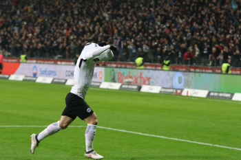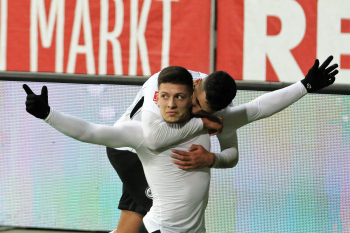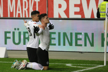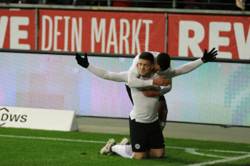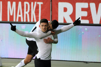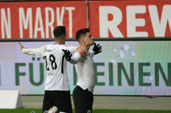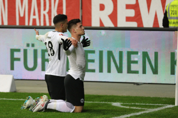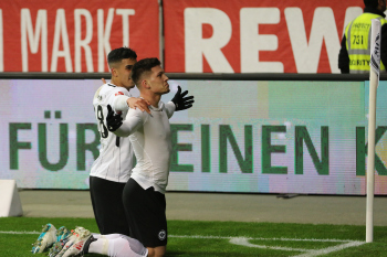 Tor zum 2:0 durch Torschützen Luka Jovic (8, Eintracht Frankfurt) Torjubel mit Ayman Barkok (28, Eintracht Frankfurt)