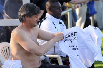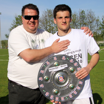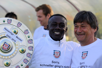 24.04.2010, Hessenliga FSV Frankfurt U23, U23 ist Hessenliga-Meister, Aufstiegsjubel ind die Regionalliga, Manager Bernd Reisig und Alexis Theodoakis