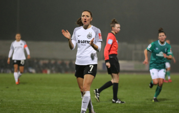 Enttaeuschung, Frust, Trauer bei den Spielerinnen von Eintracht Frankfurt nach der Niederlage, traurig, frustriert, unzufrieden, Sjoeke Nuesken (SGE)