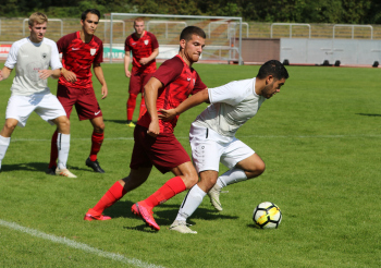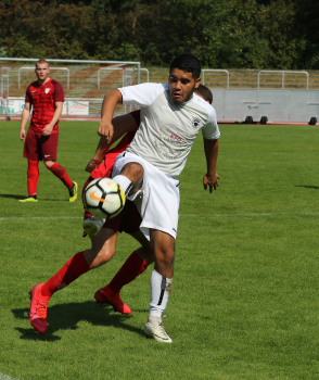 13.09.2020 Neu-Ienburg, Sportpark KOL Saison 2020/2021 Spvgg.03 Neu-Isenburg II gegen SG Egelsbach Andre Christian Laux (22, 03 NI II) gegen Ludwig Schmiedler (Egelsbach) ********** Foto: Peter Hartenfelser