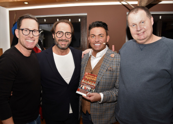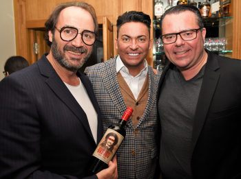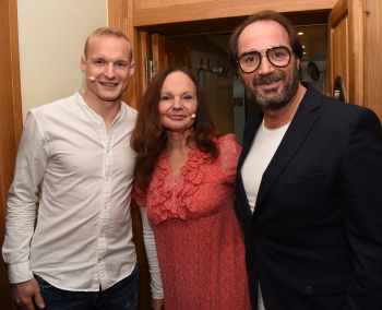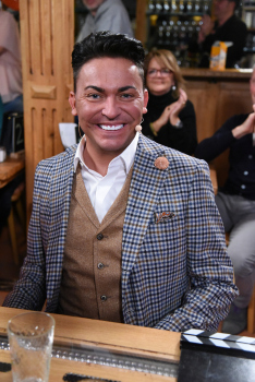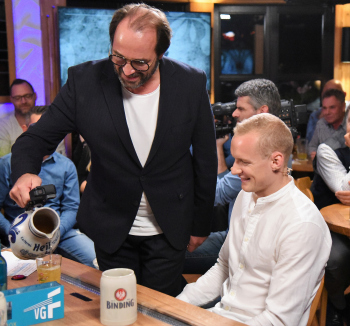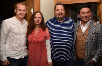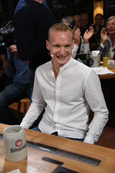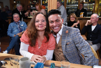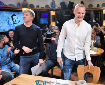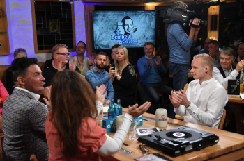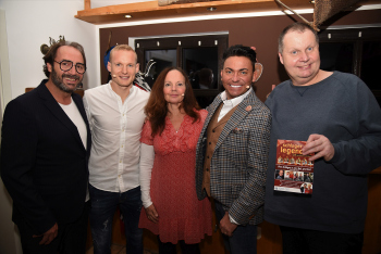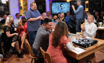 Bild zeigt: Christian Dressler, Chef der Lohrberg-Schänke, Sebastian Rode (Eintracht Frankfurt), Silvia Stenger FFH Moderatorin, Matthias Mangiapane. Reality TV Star, Thomas Rau (Travestiekünstler Olga Orange)