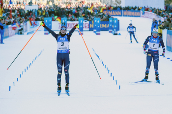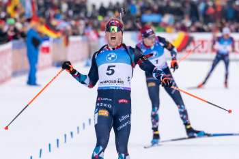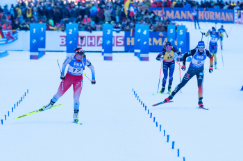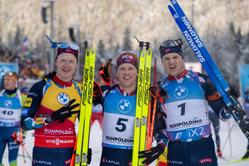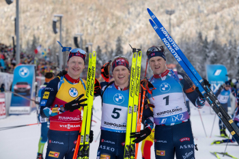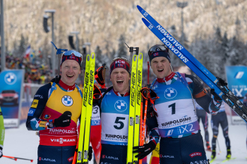 Die Sieger kommen heute alle aus Norwegen, 3.Platz Johannes Thingnes Boe (NOR), Sieger Johannes Dale-Skjevdal (NOR) und 2. Platz Vetle Sjaastad Christiansen (NOR).