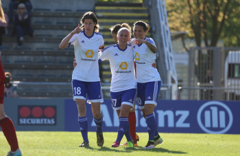 Torjubel FFC Frankfurt, Yuki Ogimi, Sophie Schmidt, Saskia Bartusiak (Frankfurt), Jubel, Emotionen