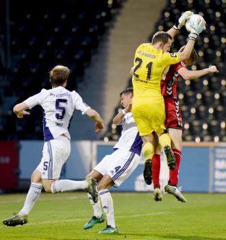 Konstantin Engel (VfL Osnabrueck), Marcel Appiah (VfL Osnabrueck), Torwart Marius Gersbeck (VfL Osnabrueck), Lucas Röser (SG Sonnenhof-Grossaspach).