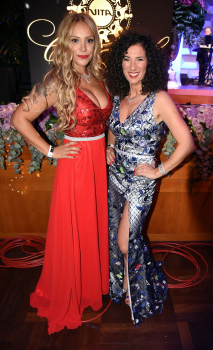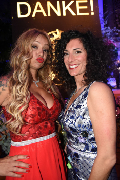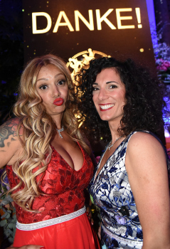 Model-Zwillinge Nina und Julia Meise mit Jule Gölsdorf, Moderatorin, Schauspielerin, Journalistin und Buch-Autorin
