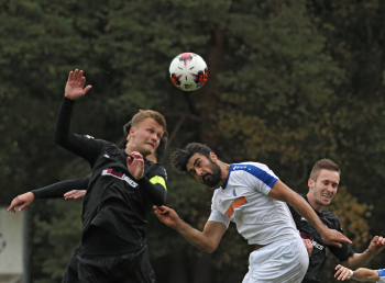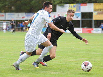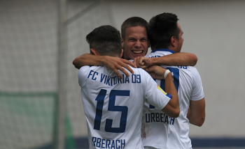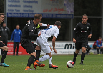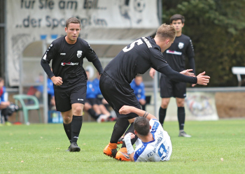 23.09.2018, xxx, Roedermark, Urberach, Waldstadion, Verbandsliga Sued, Saison 2018/2019, FC Viktoria Urberach gegen 1. FC 1906 Erlensee vl.: Tor zum 1:0 durch Mateusz Malkiewicz (FC Viktoria Urberach) Mitte, mit Sinisa Alempic (FC Viktoria Urberach) un d Patryk Czerwinski (FC Viktoria Urberach)