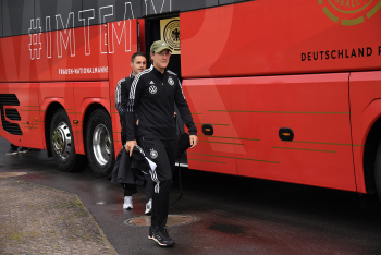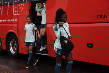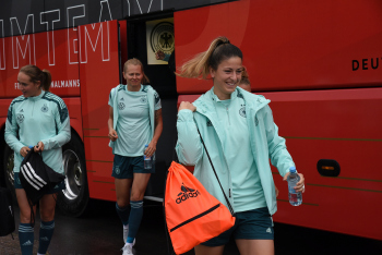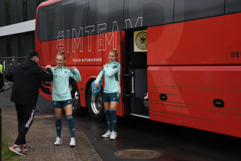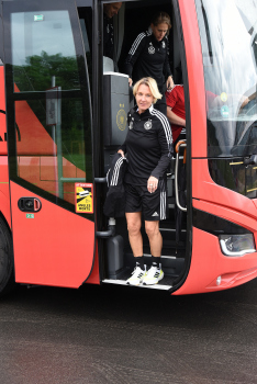 05.06.2022, Frankfurt am Main, DFB-Campus DFB Frauen Nationalmannschaft, Vorbereitung auf die Europameisterschaft (EM) Pre-Camp mit Training ausgewählter Spielerinnen #IMTEAM ist das Motto auf dem Bus der Nationalspielerinnen