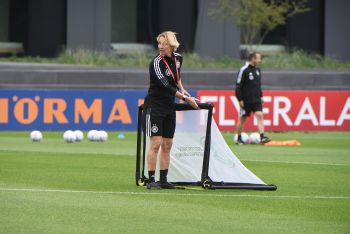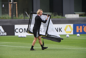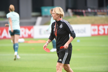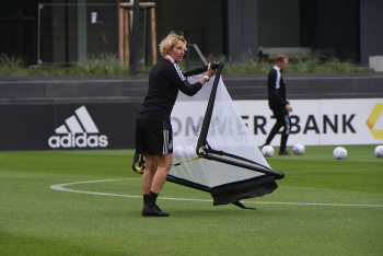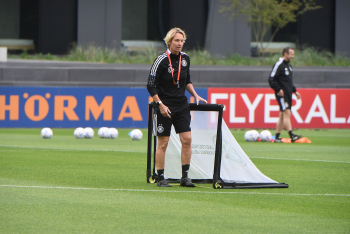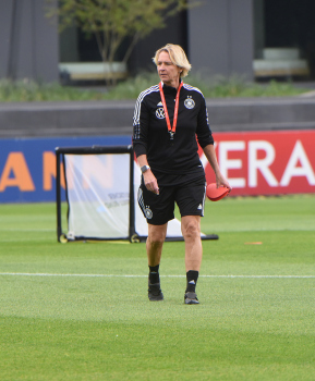 05.06.2022, Frankfurt am Main, DFB-Campus DFB Frauen Nationalmannschaft, Vorbereitung auf die Europameisterschaft (EM) Pre-Camp mit Training ausgewählter Spielerinnen Trainerin Martina Voss-Tecklenburg Nationalmannschaft Frauen Deutschland trägt die Trainingstore selbst