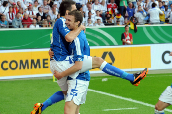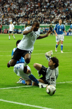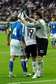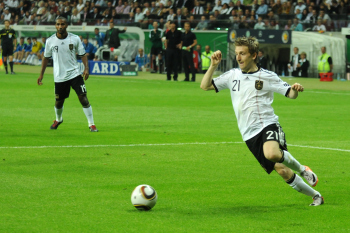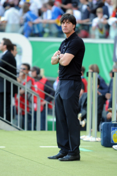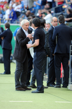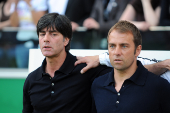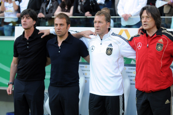 03.06.2010, Fussball-Laenderspiel Deutschland gegen Bosnien Herzegowina, Bundestrainer Joachim L?w, Assistenztrainer Hansi Flick, (Deutschland) singen die Deutsche Nationalhymne