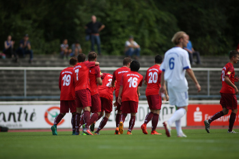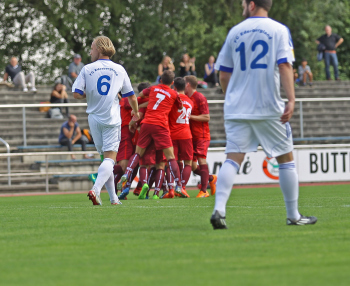xxx 13.08.2017, Fussball Lotto Hessenliga, Spvgg. Neu Isenburg - FC Ederbergland, emspor v.l. orjubel zum 1:0 durch Patrick Hartmann (Spvgg. 03 Neu-Isenburg)