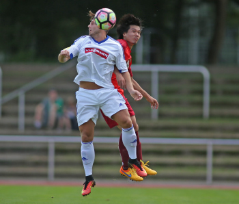 xxx 13.08.2017, Fussball Lotto Hessenliga, Spvgg. Neu Isenburg - FC Ederbergland, emspor v.l. Daniel Gora (FC Ederbergland), Kazuki Kamikawa (Spvgg. 03 Neu-Isenburg)