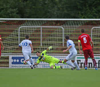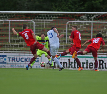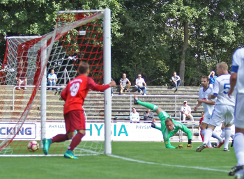 xxx 13.08.2017, Fussball Lotto Hessenliga, Spvgg. Neu Isenburg - FC Ederbergland, emspor v.l. vergebene Torchance Jan Gebhardt (Spvgg. 03 Neu-Isenburg)