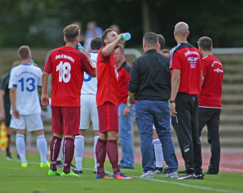 xxx 13.08.2017, Fussball Lotto Hessenliga, Spvgg. Neu Isenburg - FC Ederbergland, emspor v.l. Trinkpause