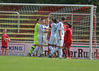 xxx 13.08.2017, Fussball Lotto Hessenliga, Spvgg. Neu Isenburg - FC Ederbergland, emspor v.l. Heftiges geschubst nachdem der Tormann Lazar Kacarevic (1 Spvgg. 03 Neu-Isenburg) angegangen wurde