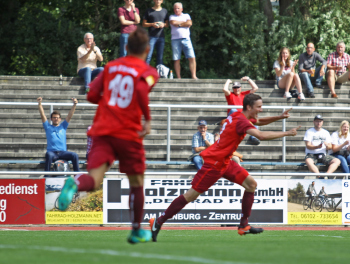 xxx 13.08.2017, Fussball Lotto Hessenliga, Spvgg. Neu Isenburg - FC Ederbergland, emspor v.l. Tor zum 1:0 durch Patrick Hartmann (Spvgg. 03 Neu-Isenburg)