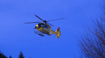 24.01.2025 Kitzbühel Hahnenkamm-Rennen 2025 Audi FIS Ski Weltcup 2025 rund um den Super-G Der Rettungshubschrauber des ÖAMTCauf dem Weg zum Einsatz um den verletzten Alexis Pinturault (FRA) zu bergen ********* Foto: Peter Hartenfelser