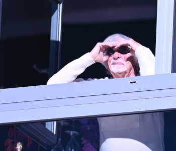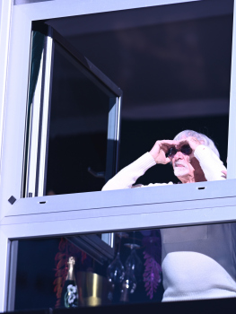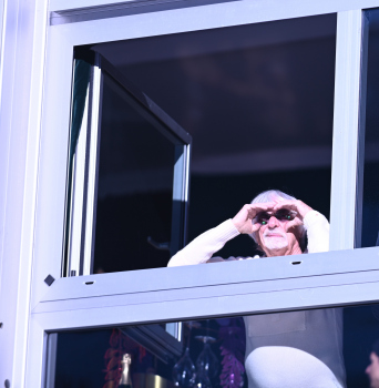 24.01.2025 Kitzbühel Hahnenkamm-Rennen 2025 Audi FIS Ski Weltcup 2025 Prominente rund um den Super-G im Fenster des RACE-Clubs verfolgt Ex-Formel-1-Chef Bernie Ecclestone das Geschehen ********* Foto: Peter Hartenfelser