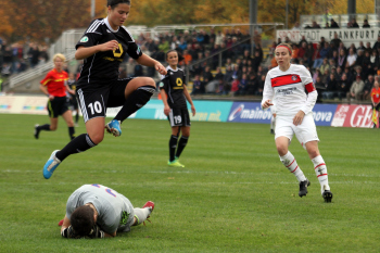 Torsch?tzin zum 1:0 Fatmire Bajramaj (FFC Frankfurt) und Marozsan Dzenifer (FFC Frankfurt)