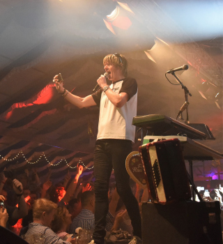 Stimmung im Zelt die Leute tanzen auf den Tischen und