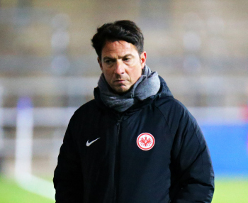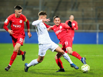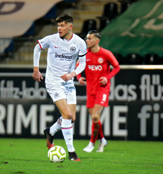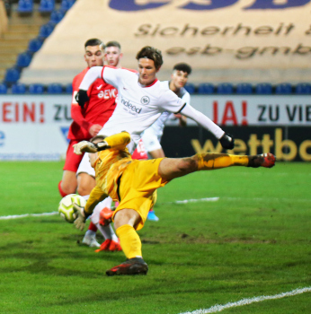 07.02.2020; xxx, Fussball, PSD Arena, Frankfurt am Main, A-Junioren Bundesliga Sued/Suedwest; Eintracht Frankfurt gegen Kickers Offenbach (OFC); vl Tim Littmann (Eintracht Frankfurt); , Hueseyin Bakirsu Kapitaen (Eintracht Frankfurt); und in rot Felix Schuetz (Kickers Offenbach OFC);