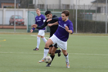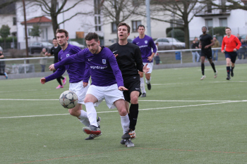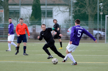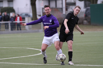 08.03.2015 Neu-.Isenburg, Sportpark Saison 2014/2015, Gruppenliga SG Rosenh?he - FC Dietzenbach Christian R?ger (Rosenh?he) gegen Marcus Seidemann (Dietzenbach)