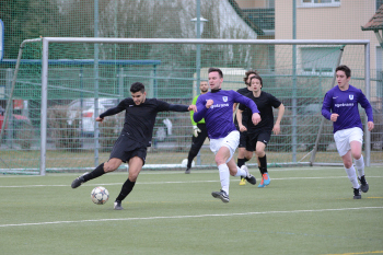 08.03.2015 Neu-.Isenburg, Sportpark Saison 2014/2015, Gruppenliga SG Rosenh?he - FC Dietzenbach Evangelos Zormpalas (Rosenh?he) gegen Kevin Weilm?nster (Dietzenbach)