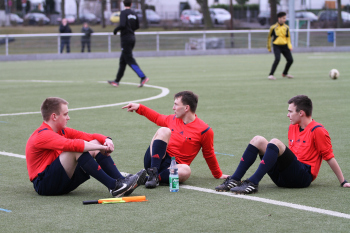 08.03.2015 Neu-.Isenburg, Sportpark Saison 2014/2015, Gruppenliga SG Rosenh?he - FC Dietzenbach Schiedsrichter Rene Schmidt, mit den Assistenten Jan Philipp Bastian und Jason Lee Clotz