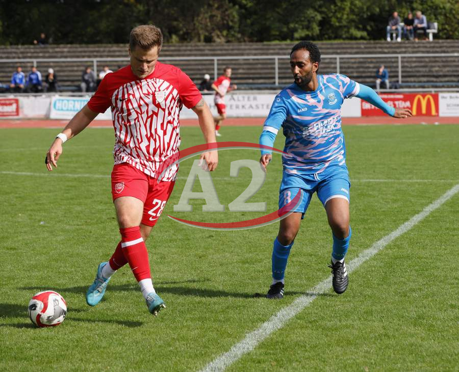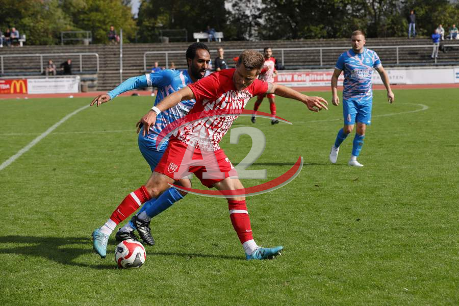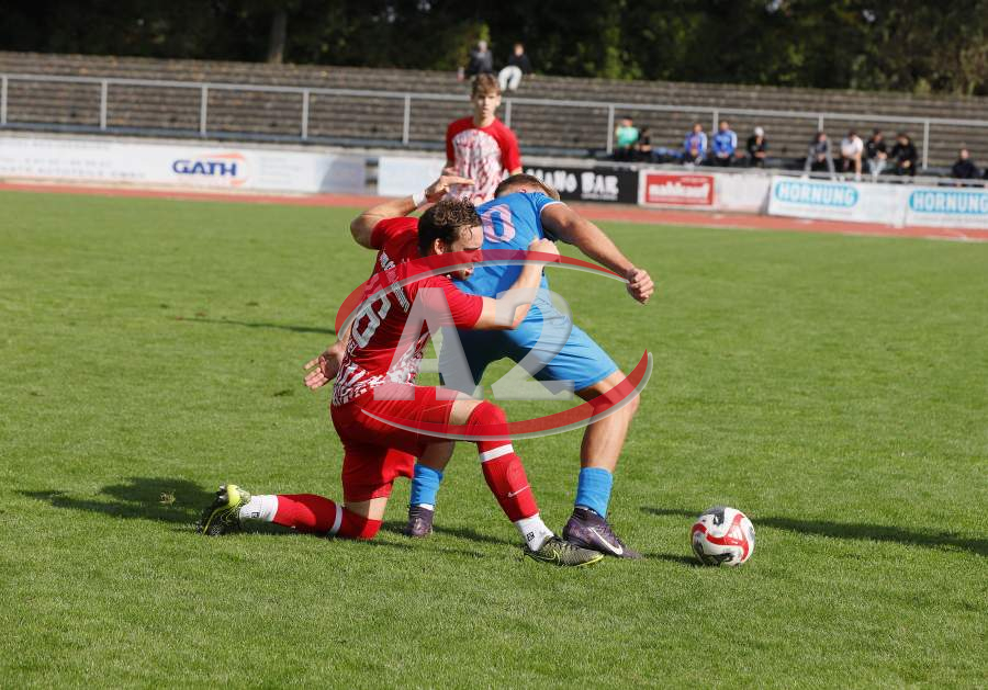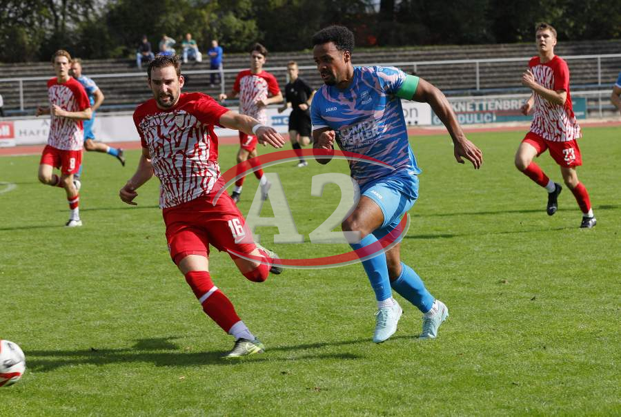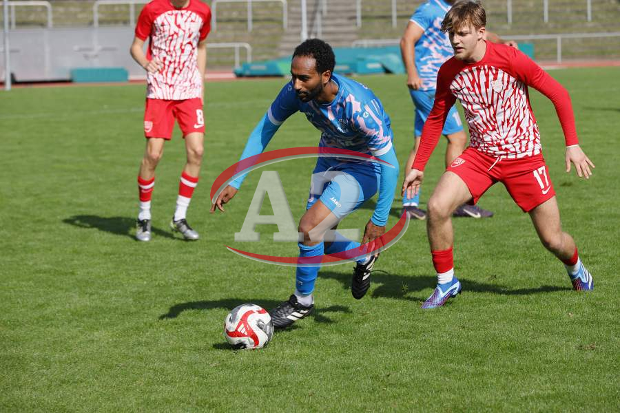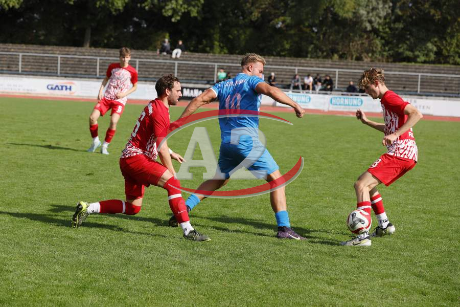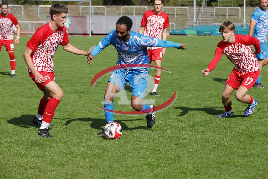 Kulick, Romeo (23, Spvgg. Neu-Isenburg II) und Zuschlag, Maximilian (17, Spvgg. Neu-Isenburg II) gegen Temesgen Mamay (SSG Langen)