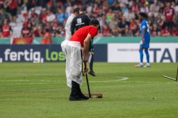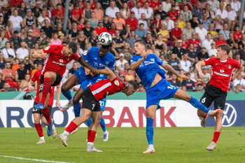 xettx, Deutschland, Aspach, 15.08.2025, Fussball, DFB-Pokal: SG Sonnenhof Grossaspach vs Bayer 04 Leverkusen, Saison 2025/2026, 1. Hauptrunde, WIRmachenDRUCK Arena