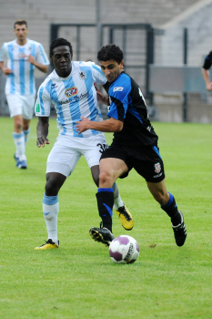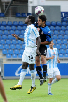 16.7.2010, Regionalliga S?d, Saison 2010/2011, U 23 FSV Frankfurt II vs TSV 1860 M?nchen, Fatih Alemdar hinten und Jaouhar Mnari (FSV Frankfurt) vs David Manga Lembe (1860 M?nchen)