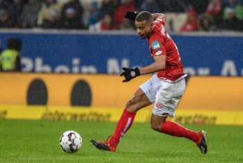 Reiss Nelson (TSG 1899 Hoffenheim), Torwart Robin Zentner (1.FSV Mainz 05), Danny Latza (1.FSV Mainz 05), Ishak Belfodil (TSG 1899 Hoffenheim) und Benjamin Hübner (TSG 1899 Hoffenheim).