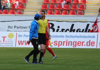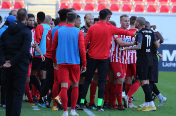 Benjamin Kirchhoff (28, OFC) und Tim Müller (Steinbach) geraten aneinander, Rudelbildung