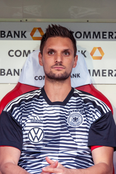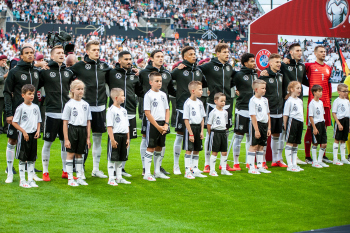 Torwart Manuel Neuer (GER), Joshua Kimmicha (GER), Timo Werner (GER), Leon Goretzka (GER), Julian Draxler (GER) und Marco Reus (GER) bedanken sich bei den Fans.