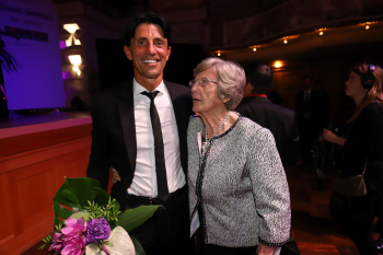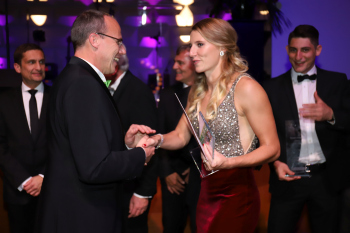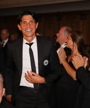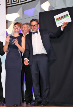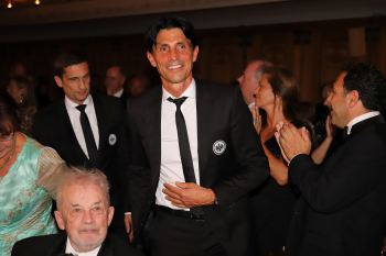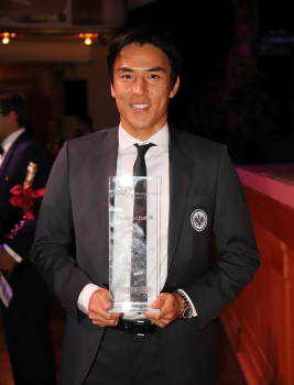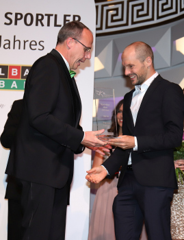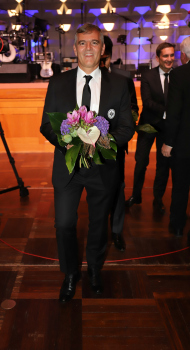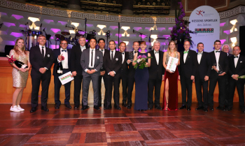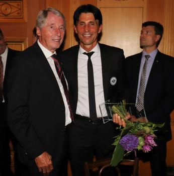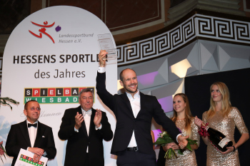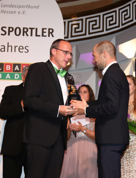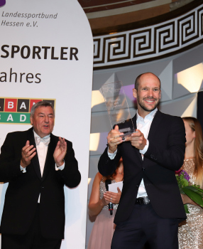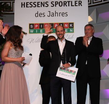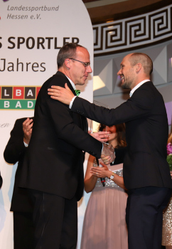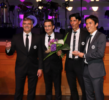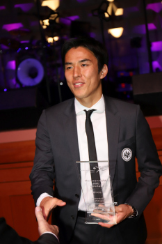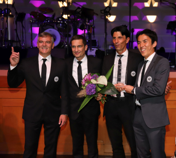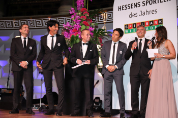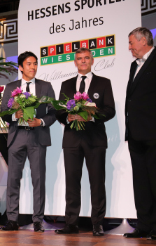 Sportdirektor Bruno Hübner (Eintracht Frankfurt) Spielbankchef Andreas Krautwald, Makoto Hasebe, und Manfred Petz (Eintracht Frankfurt), Präsident des Landessportbunds Hessen Dr. Rolf Müller.