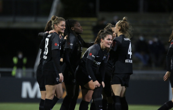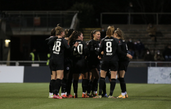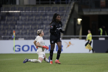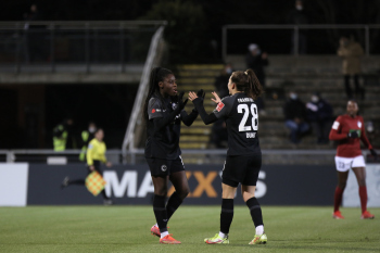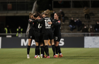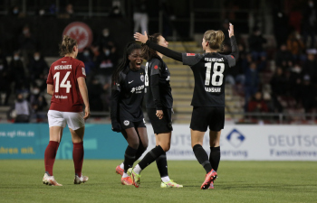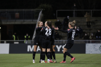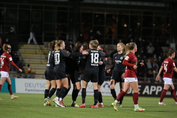 FLYERALARM Frauen-Bundesliga Saison 2021/2022, Spieltag 10, SGE, Eintracht Frankfurt Frauen (SGE) - 1. FFC Turbine Potsdam (TP), Torjubel Eintracht Frankfurt Frauen, Jubel, Freude, Emotionen, Goal celebration, Nicole Anyomi (SGE)