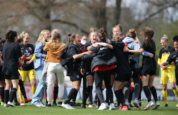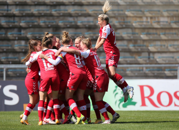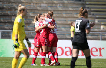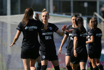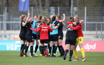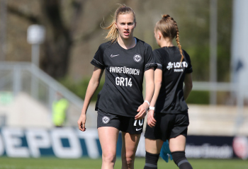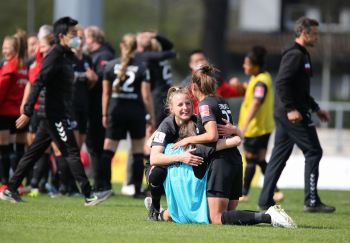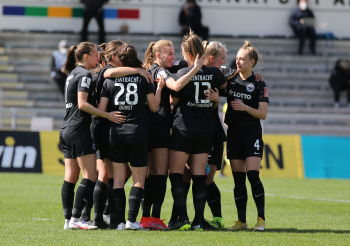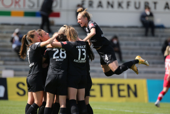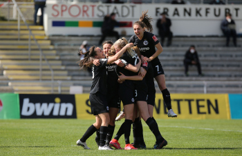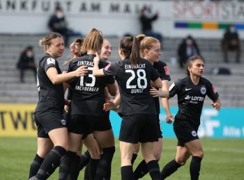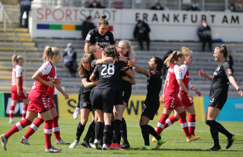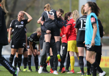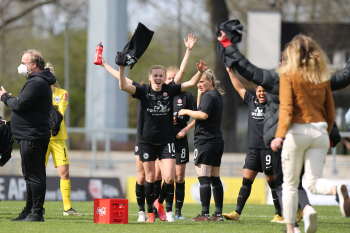 Jubel bei den Eintracht Frankfurt Frauen nach dem Sieg und dem Einzug ins Finale, Freude, Emotionen, celebration, Virginia Kirchberger, Laura Feiersinger (SGE)