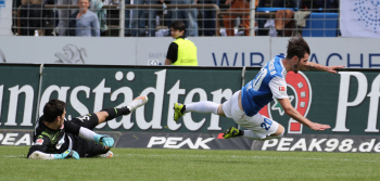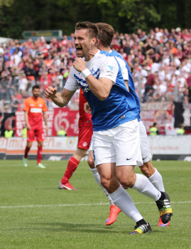 02.05.2015, Fussball, 2.Bundesliga SV Darmstadt 98 - 1. FC Kaiserslautern Torsch?tze Ronny K?nig (links), Tobias Kempe(beide Darmstadt) Foto: HERBERT KRAEMER