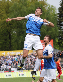 02.05.2015, Fussball, 2.Bundesliga SV Darmstadt 98 - 1. FC Kaiserslautern Nach dem Spiel: Die Darmst?dter Mannschaft bedankt sich bei ihren Fans Foto: A2/Hartenfelser
