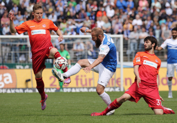 02.05.2015, Fussball, 2.Bundesliga SV Darmstadt 98 - 1. FC Kaiserslautern v.links: Alexander Ring (Kaiserslautern), Marco Sailer (Darmstadt), Markus Karl (Kaiserslautern) Foto: A2/Hartenfelser