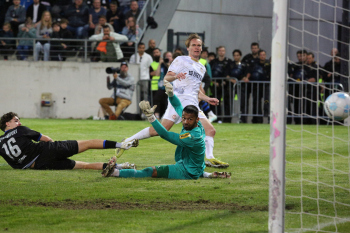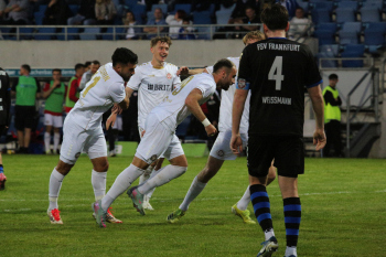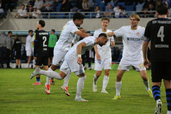 Torjubel nach dem Siegtor zum 0:1 durch Fatih Kaya (SVWW), Torwart Justin Ospelt (FSV Frankfurt) geschlagen